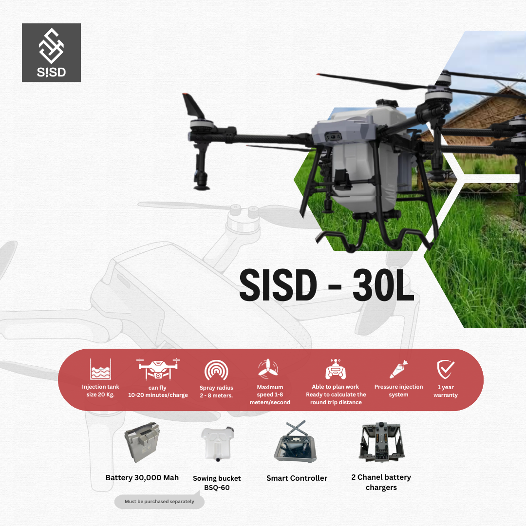 Agricultural drone, model SISD - 50L, full system specifications, usable beyond limits